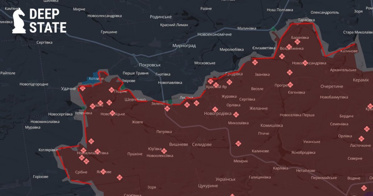 "Цей відтинок є особливо насиченим на бойові дії, адже кожен може бачити досить немалу синю зону, де українські військові проявляють ініціативу, щоб зупинити та відтіснити ворога, зокрема, користуючись здобутками на інших ділянках Покровського відтинку", - пишуть у DeepState.