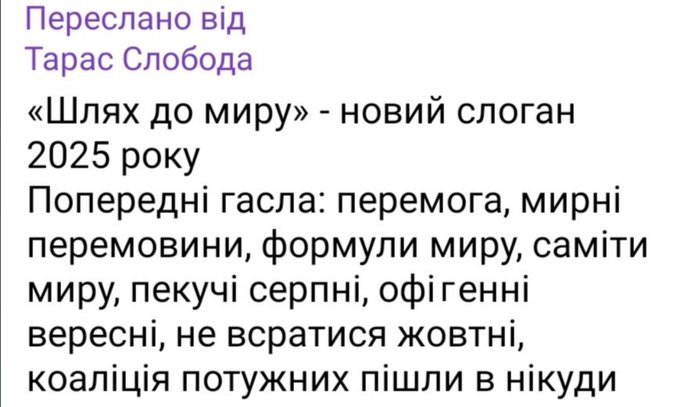 Ну отак і приїдемо до визнання окупованих територій, скорочення армії, припинення західої допомоги, зняття санкцій з РФ.