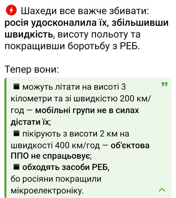 Тепер орки вдосконалили шахеди, частина має ручне управління з допомогою відеокамери, частина летить на висоті недосяжній до ЗК та ДШК якими переважно оснащені мобільні групи.