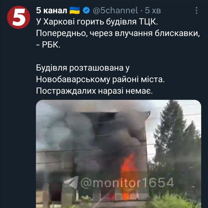 Сьогодні, 11 червня, сталася пожежа у будівлі одного з районних територіальних центрів комплектування та соціальної підтримки Харкова. Вогонь локалізували. Терцентр відкинув версії про підпал або диверсію.
