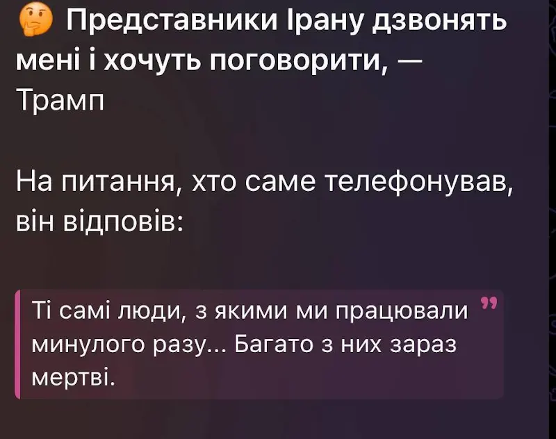 За словами Ушакова, розмова тривала 50 хвилин. Лідери обговорили загострення на Близькому Сході. Путін поінформував Трампа про свої попередні телефонні контакти з президентом Ірану та прем’єр-міністром Ізраїлю.