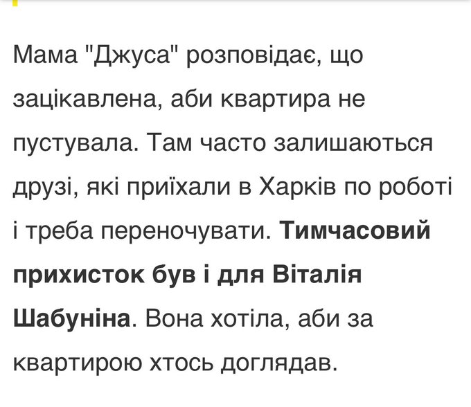 За словами речниці ДБР, одним із таких місць стала квартира в Харкові, в якій Шабунін проживав фактично до моменту оголошення йому про підозру – до ранку 10 липня.