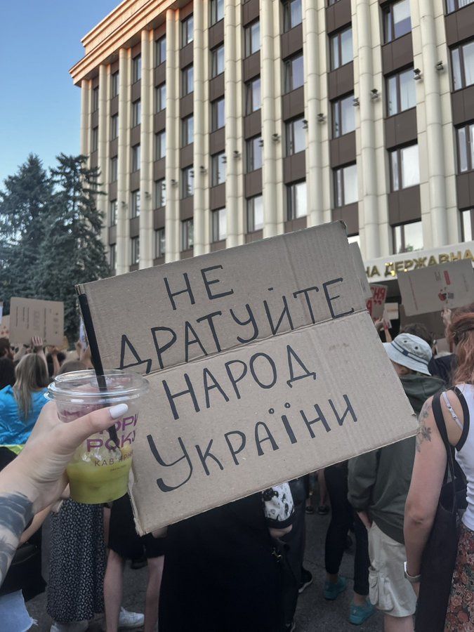 У Дніпрі люди вийшли на акцію проти ухвалення Верховною Радою законопроєкту №12414, що фактично означає ліквідацію незалежності НАБУ та САП.