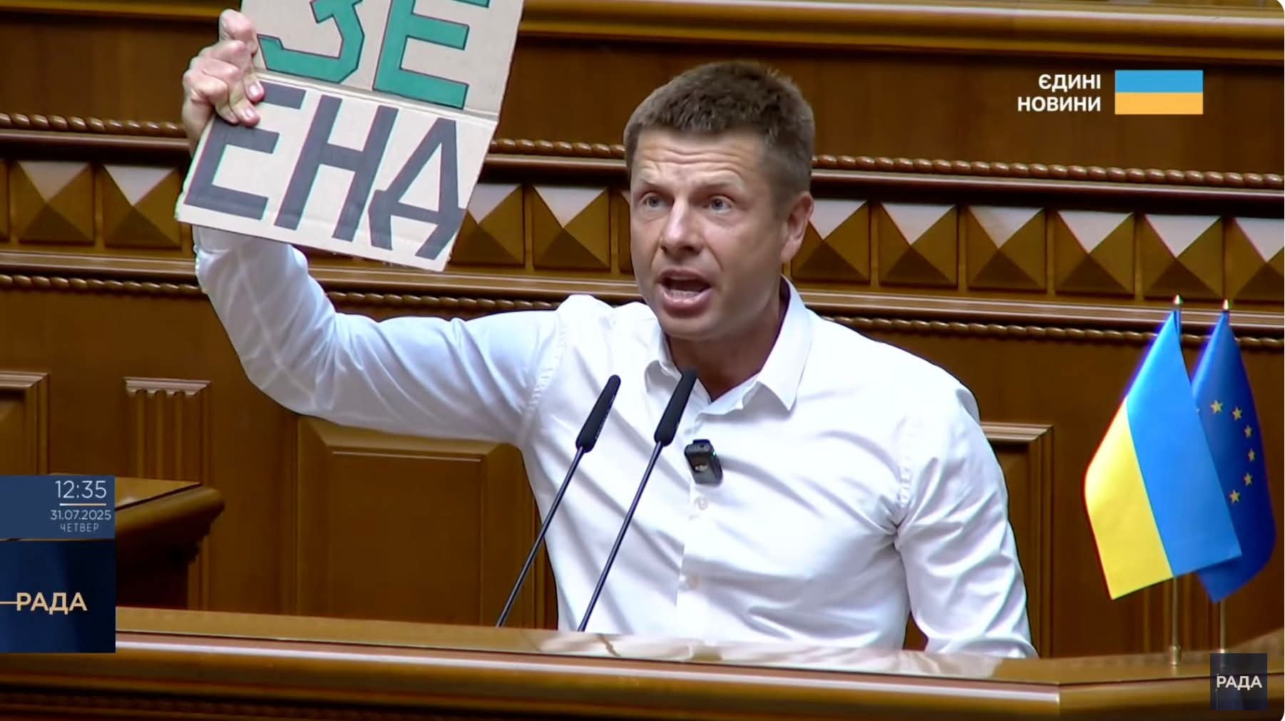 Народний депутат України "Слуга народу" Олександр Маріковський приніс у Верховну раду картонку, на якій написав про підтримку законопроєкту №13533.
