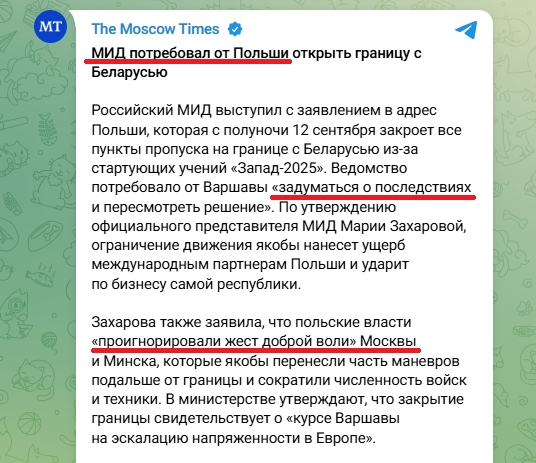 Як зазначається, це пов'язано з російсько-білоруськими військовими навчаннями "Запад-2025".