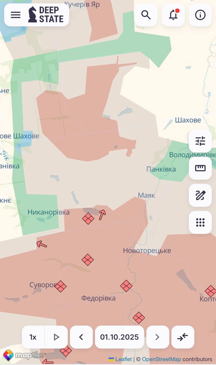 Про це повідомляє моніторинговий проєкт DeepState, інформує Цензор.НЕТ.