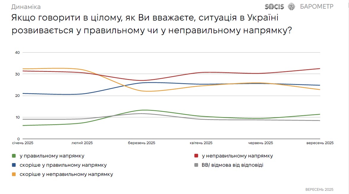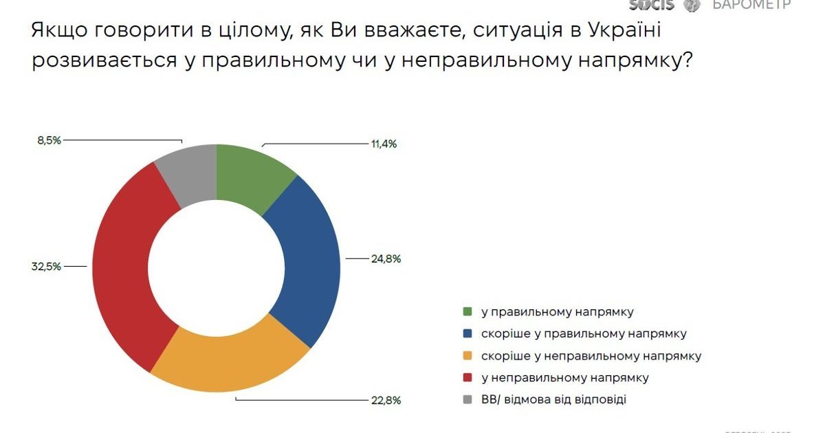 Понад 55% опитаних вважають, що ситуація в Україні розвивається у неправильному або скоріше неправильному напрямку, - SOCIS. ІНФОГРАФІКА