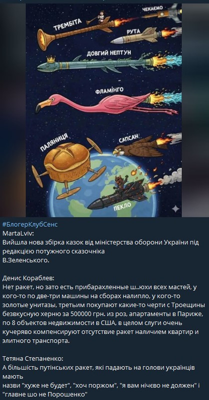 Склади вже і так тріщать по швах від шаленої кількості "балаболістичних ракет", "трембіт", "паляниць", "довгих нептунів" і "рожевих фламінго".