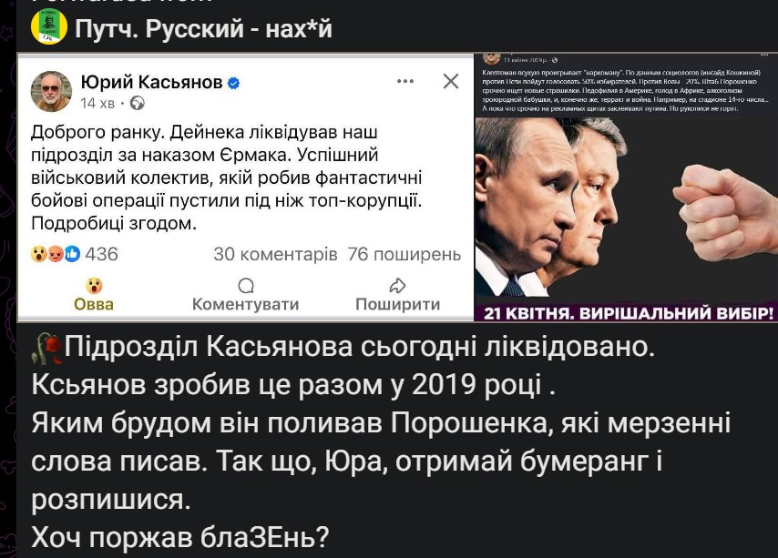 Раніше Касьянов заявив, що успішний військовий підрозділ пустили під ніж топкорупції та ліквідували за наказом Єрмака.