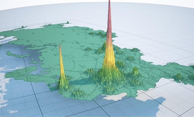 Це мапа щільності населення росії. Вона показує, що єдині 2 регіони котрі треба відключати це не Саратов чи Брянськ. Це Москва і Пітєр. На решту регіонів вони можуть забити, а на ці - ніяк.