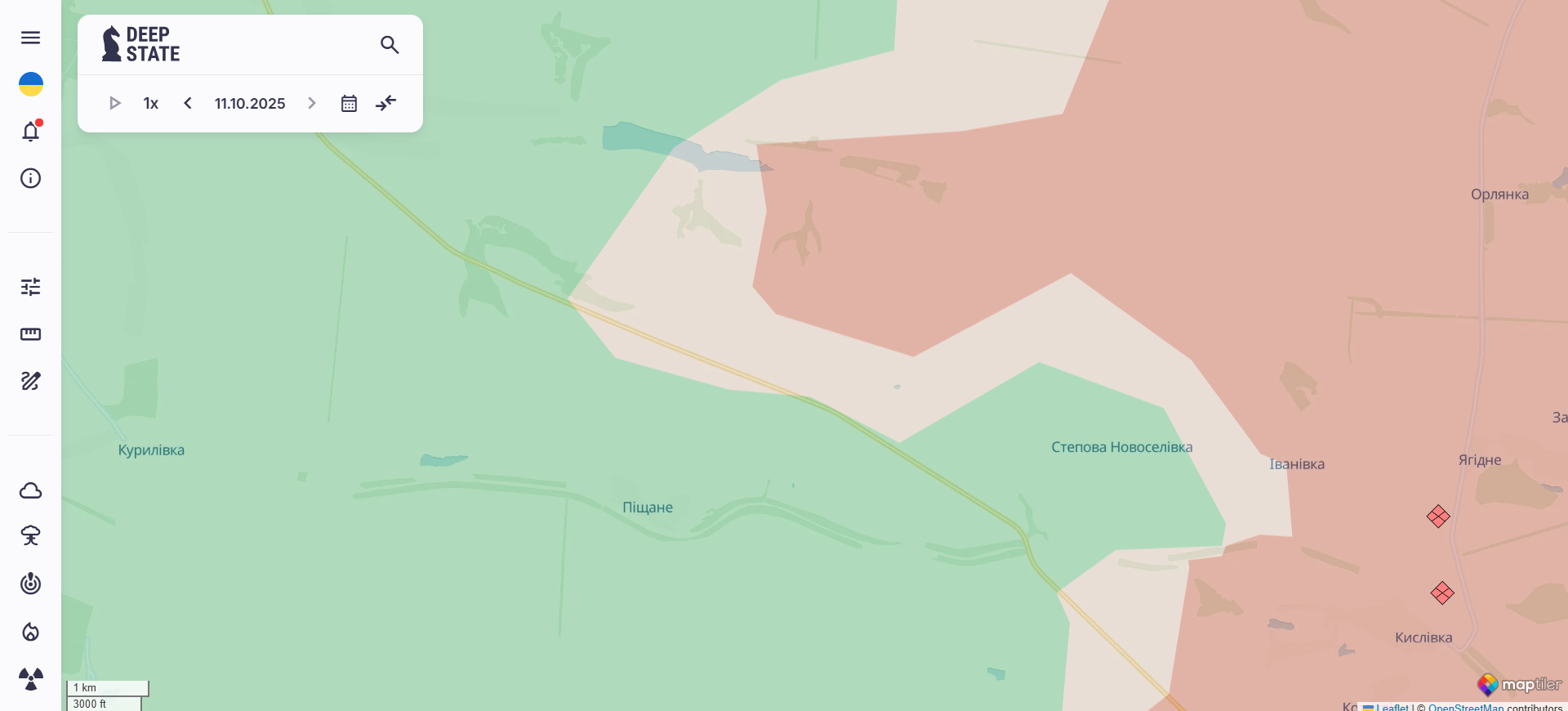 "Мапу оновлено. Ворог просунувся поблизу Піщаного (селище у Куп'янському районі Харківської області), Торського (село в Лиманській міській територіальній громаді Донецької області) та Малинівки (село Малинівської сільської громади Пологівського району Запорізької області)", - йдеться у повідомленні.