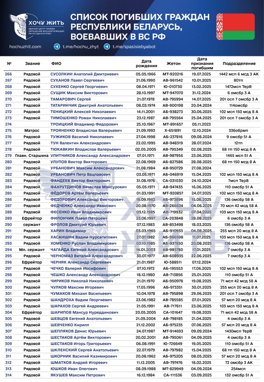 Щонайменше 314 громадян Білорусі, які воювали проти України на боці РФ, загинули, - "Хочу жить". ПЕРЕЛІК