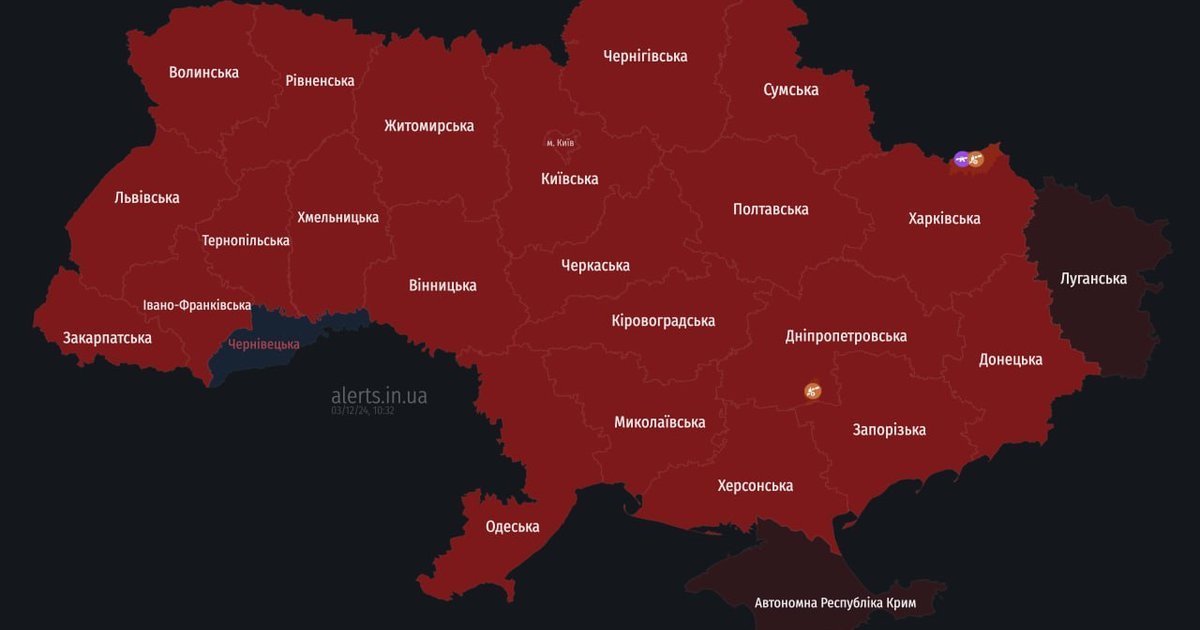 Об 05:21 ранку в Україні було оголошено масштабну повітряну тривогу.