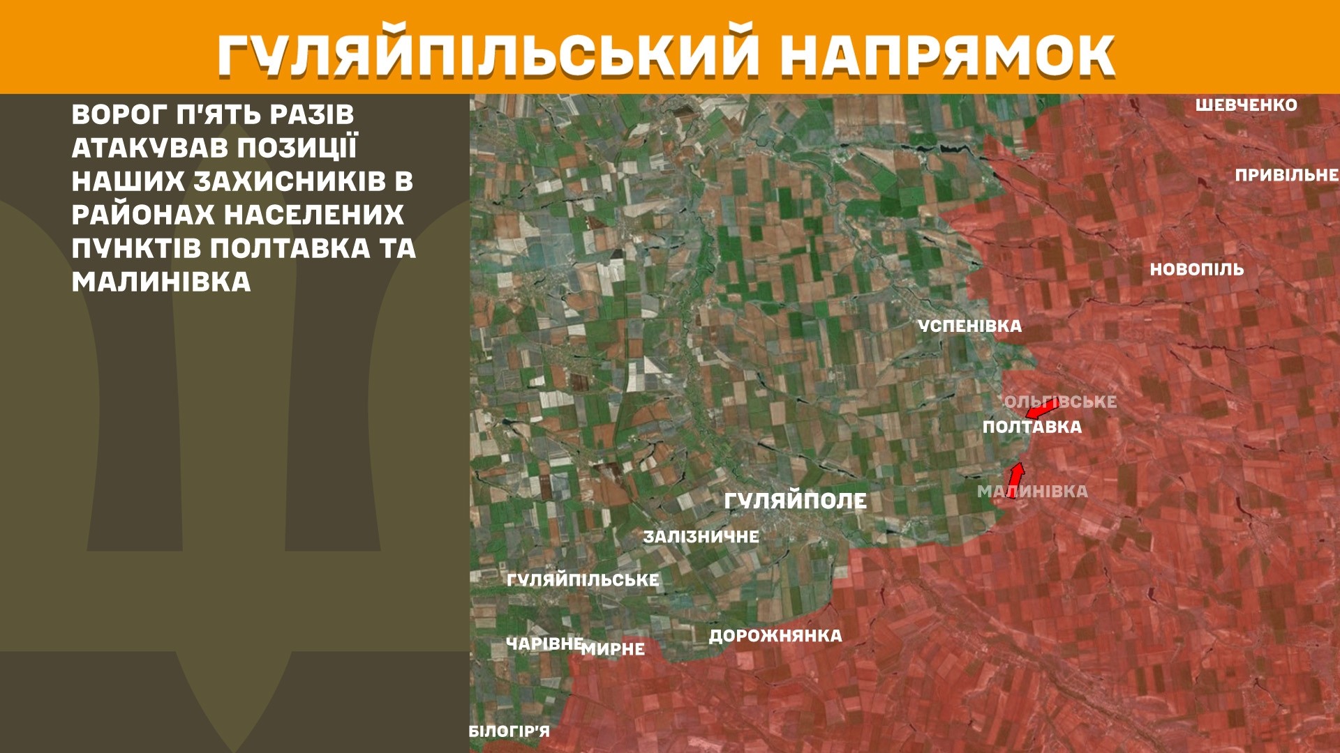 На Гуляйпільському напрямку ворог п’ять разів атакував позиції наших захисників у районах населених пунктів Полтавка та Малинівка.
