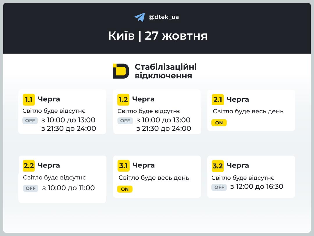"Через складну ситуацію в енергосистемі, зумовлену наслідками попередніх російських обстрілів – у кількох регіонах України наразі вимушено запроваджені графіки погодинних відключень обсягом від 1 до 2,5 черги. Обмеження будуть скасовані, як тільки ситуація стабілізується", - зазначили там.