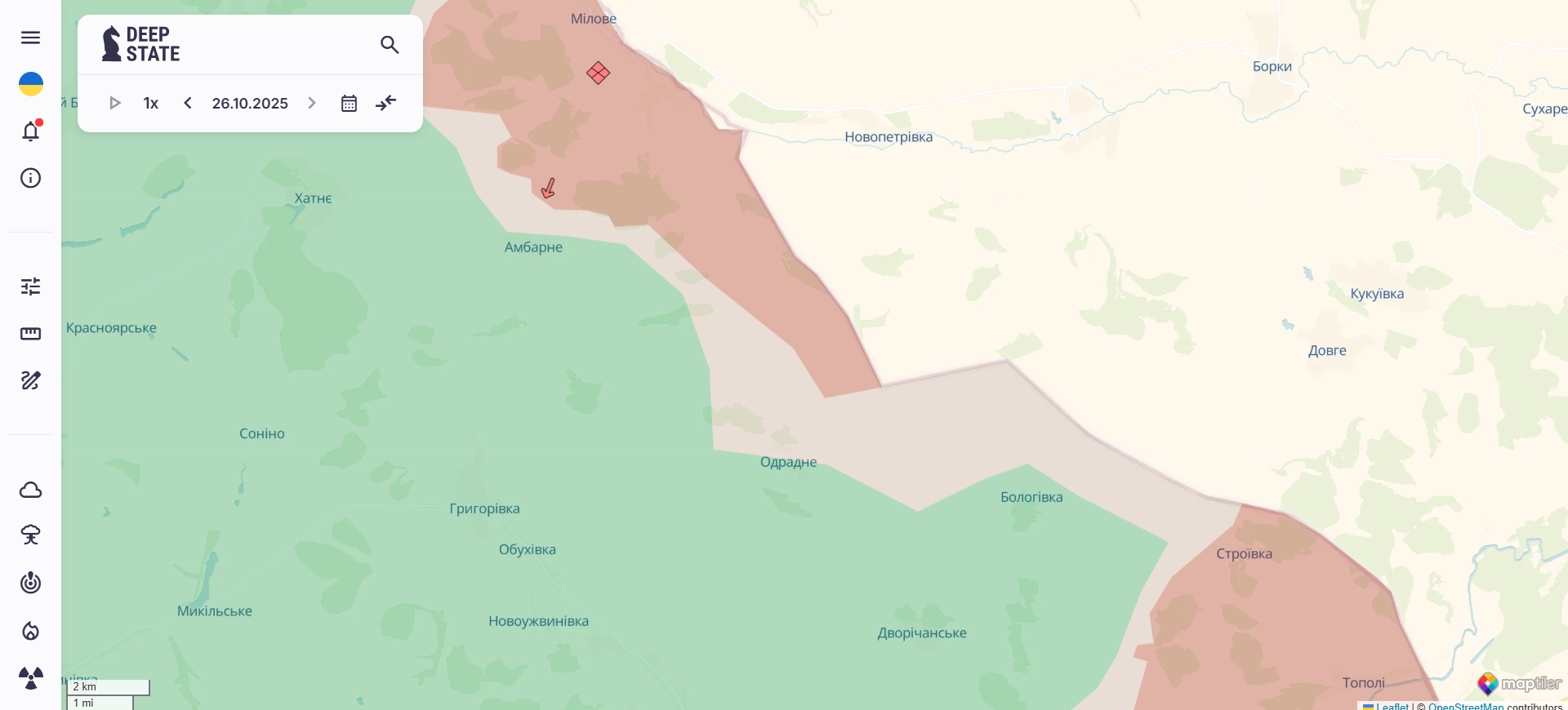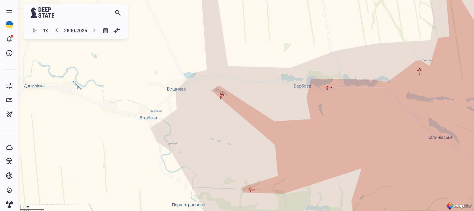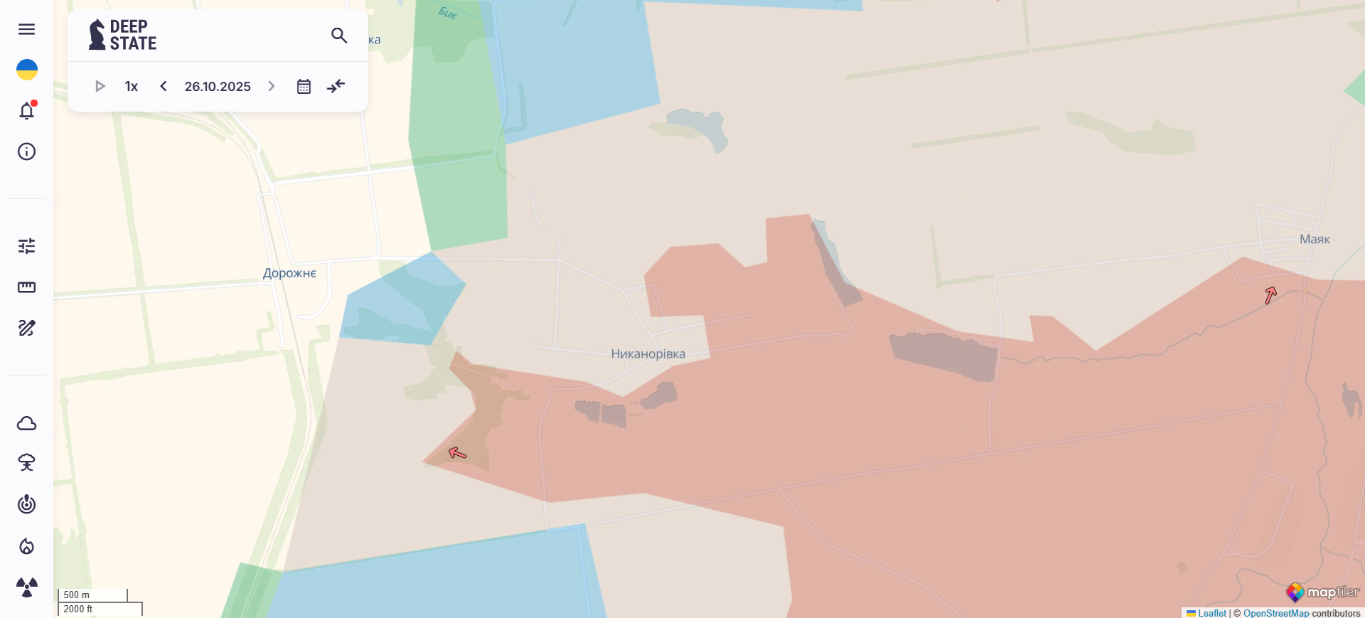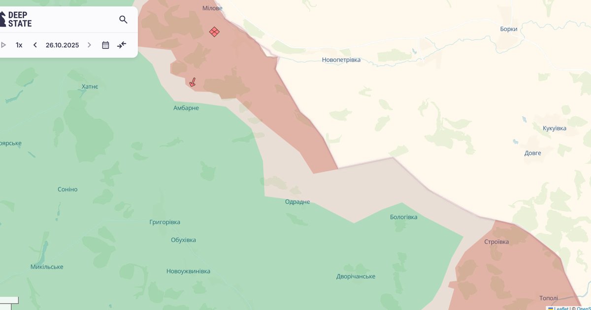 "Мапу оновлено. Ворог просунувся поблизу Одрадного (село у Дворічанській селищній громаді Куп'янського району Харківської області), Вишневого (село у Синельниківському районі Дніпропетровської області) та Злагоди (село у Синельниківському районі Дніпропетровської області). Уточнено ситуацію в Никанорівці (село Шахівської сільської громаді Покровського району Донецької області)", - йдеться у повідомленні.