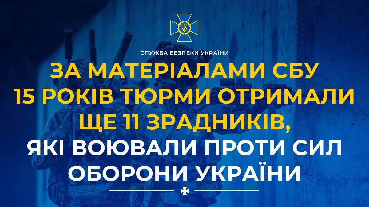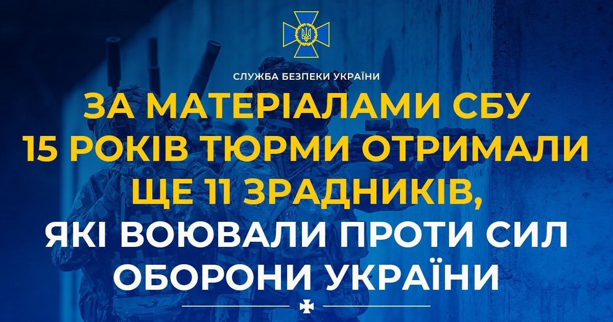 За доказовою базою Служби безпеки реальні терміни ув’язнення отримали ще одинадцять зрадників, які перейшли на бік ворога і воювали проти Сил оборони на Донеччині та Луганщині.