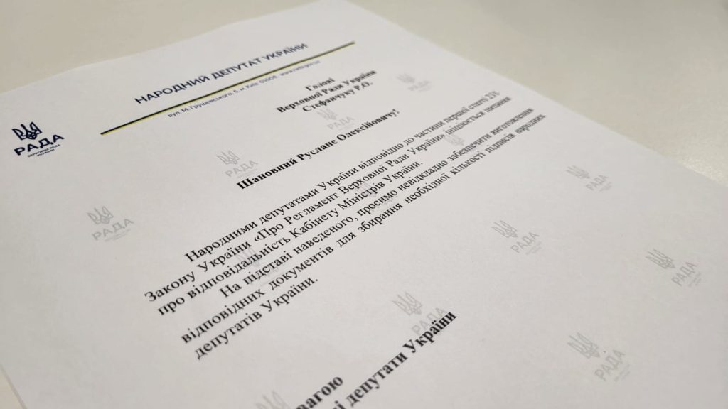 Фракція "Європейська Солідарність" надіслала офіційний лист до Голови Верховної Ради із вимогою видати підписні листи і почати процедуру оголошення недовіри уряду, що має наслідком його відставку.
