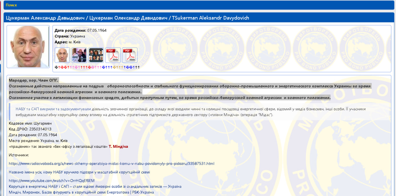Міндіч і Цукерман внесені до бази "Миротворця"