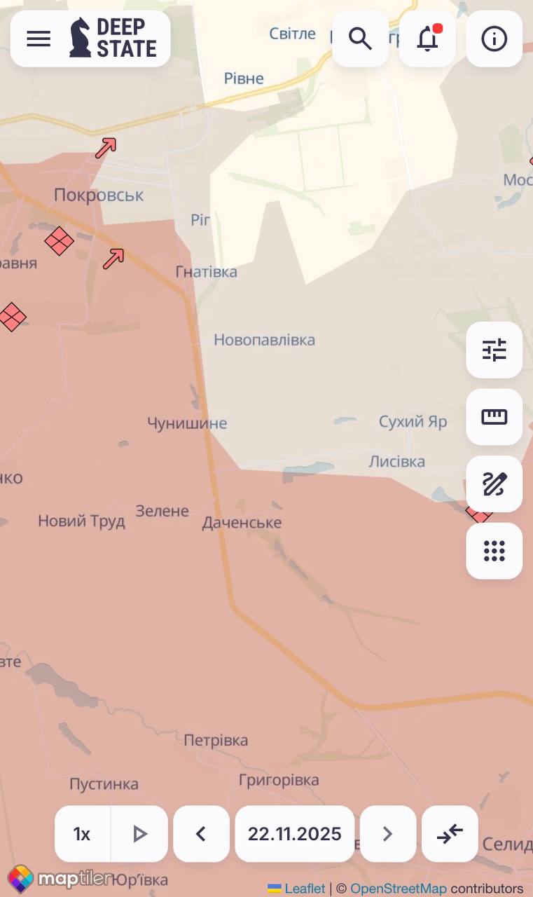 - Як стверджують у DeepState, центральна частина Покровська поступово переходить під контроль РФ: ворог закріплюється та облаштовує позиції.