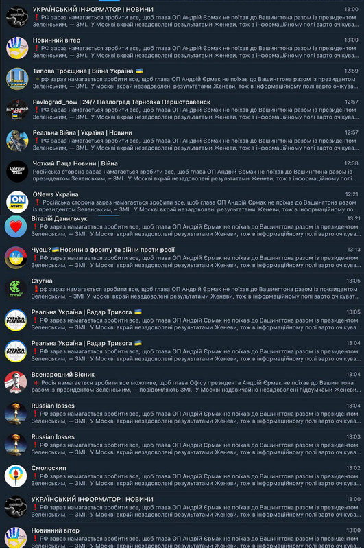 - Згодом президент Володимир Зеленський повідомив про перші результати перемовин, які відбуваються у Женеві за участі делегацій США, України, ЄС і Британії щодо американського плану завершення війни РФ проти України.
