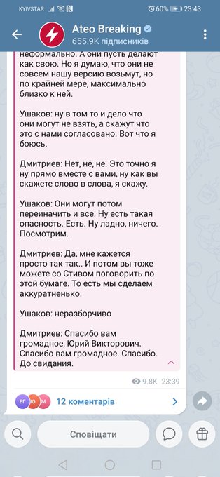 Після надходження документа Рубіо провів розмову з главою МЗС РФ Сергієм Лавровим, під час якої обговорювався зміст "неофіційних" матеріалів. Цього тижня в Женеві він також зазначив, що отримував "численні неофіційні документи такого характеру", не уточнюючи деталей.
