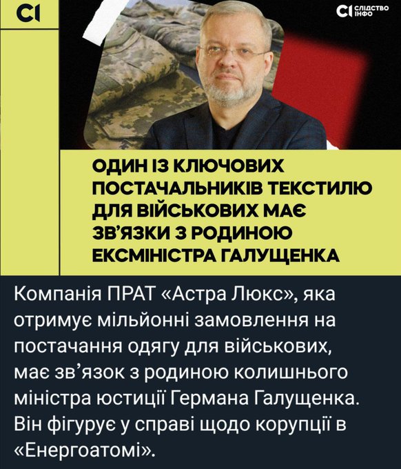"Заяву про вчинення злочину посадовими особами Міноборони в порядку статті 214 Кримінально-процесуального кодексу України до НАБУ сьогодні подали представники ГАР МОУ — голова ради Юрій Гудименко та його заступниця Тетяна Ніколаєнко. У документі йдеться про можливе зловживання посадовими особами Міністерство оборони України — зокрема DOT - Державний оператор тилу, під час проведення тендерів щодо закупівлі бронежилетів. Йдеться про контракти із компаніями ТОВ "Фортеця захисту" та ТОВ "Мілікон ЮА"", - сказано в повідомленні.