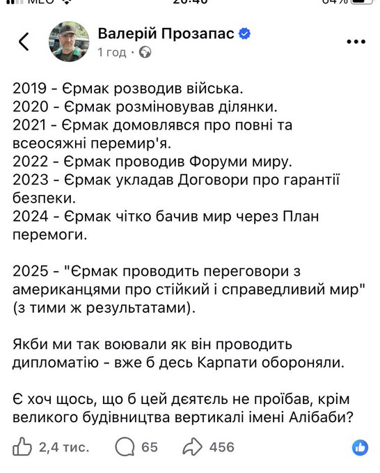 "Єрмака врятувати неможливо. Ще пару годин зволікань і наступне президентство, як і добре ім'я Зеленського, будуть принесені в жертву спробам врятувати Єрмака. Немає такої дружби, яка би вартувала доброго імені", - зазначив Яременко.
