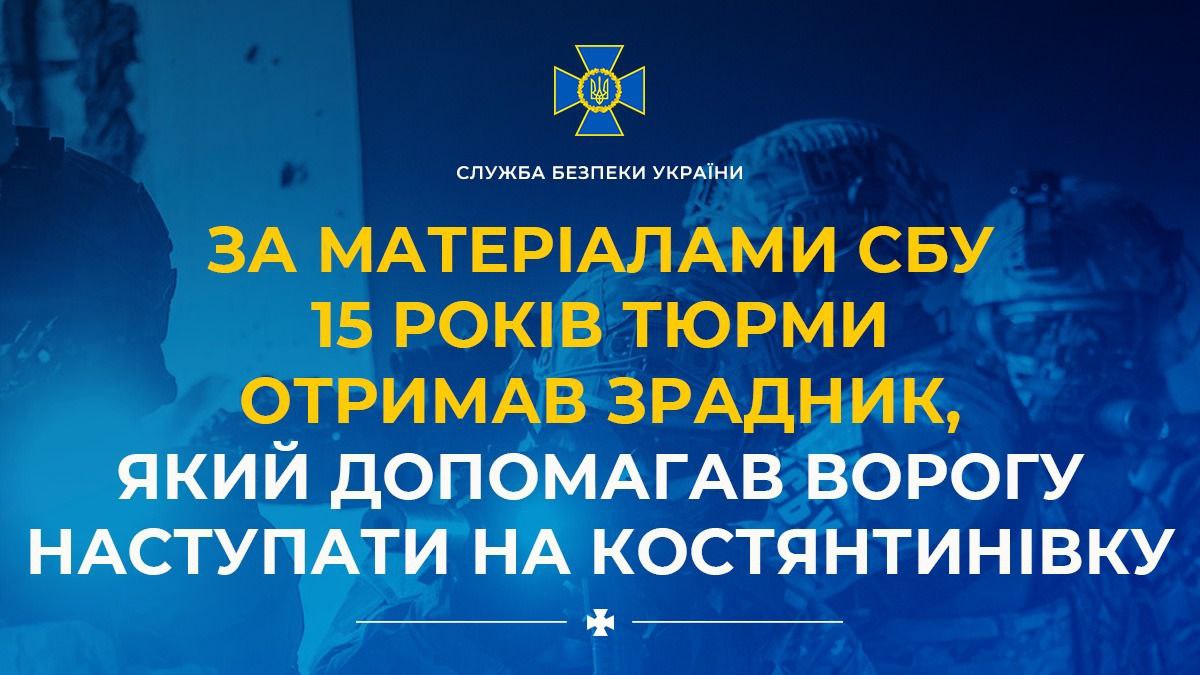 За матеріалами СБУ 15 років тюрми отримав зрадник, який допомагав ворогу наступати на Костянтинівку