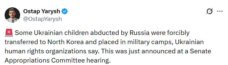 Частину викрадених Росією українських дітей примусово перевезли до КНДР.