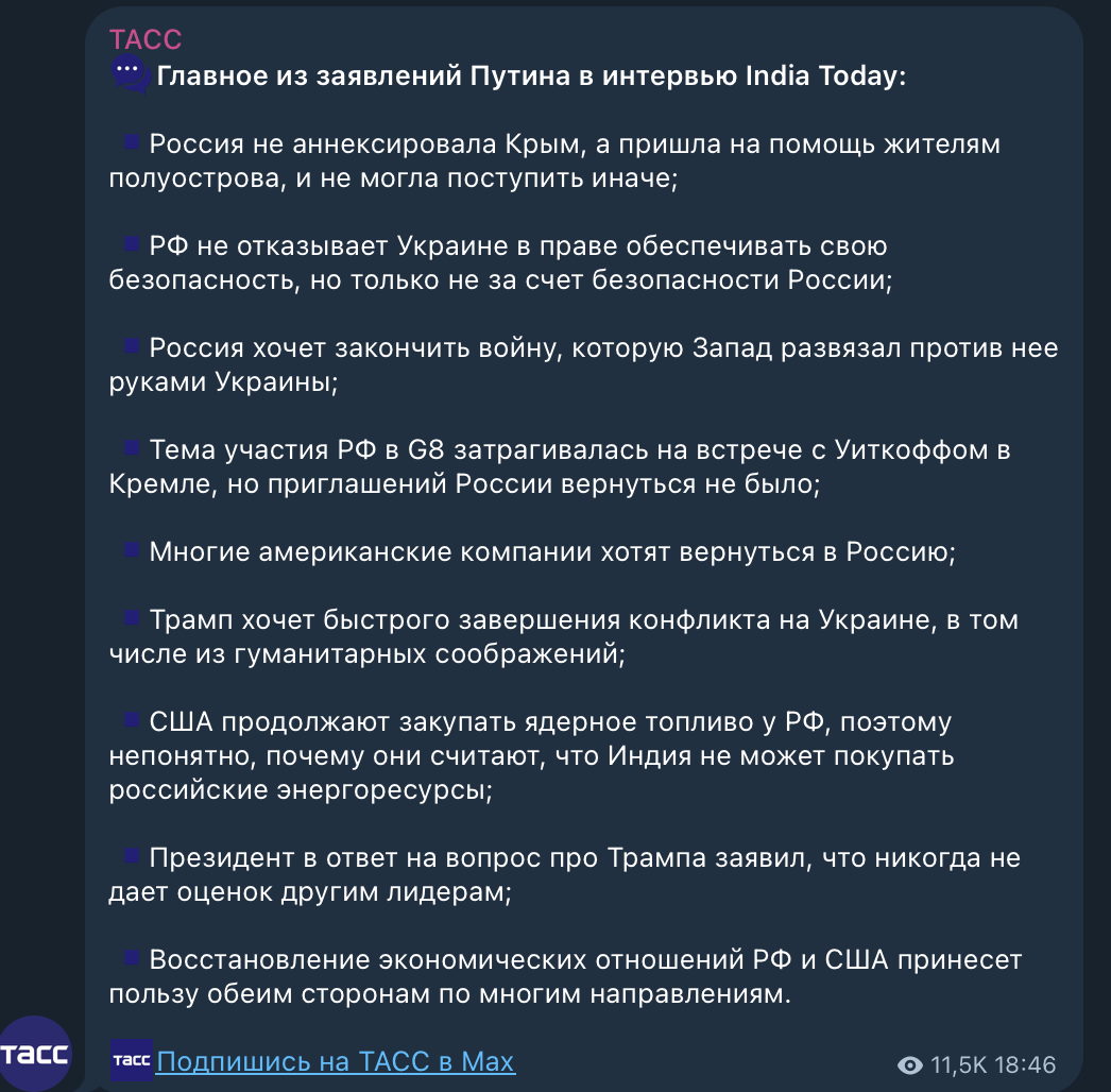 Путін додав, що Київ повинен усвідомити: "найкращим способом вирішення "конфлікту" є перемовини". Він також позитивно оцінив мирні зусилля президента США Дональда Трампа.