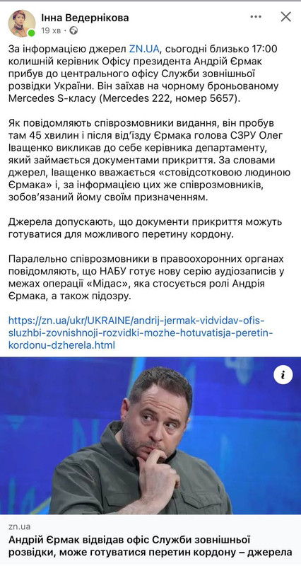 Єрмак відвідав офіс СЗР Іващенка. Імовірно, готується втеча з України, - ЗМІ Джерело: https://censor.net/ua/n3588931