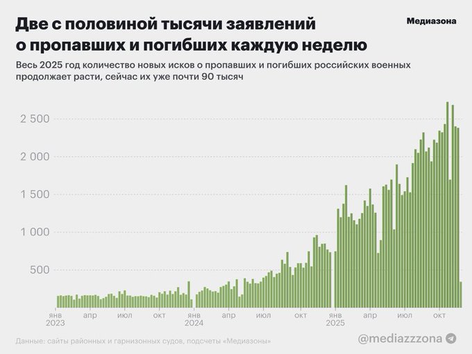 І тепер щотижня надходить ~2500 повідомлень про зниклих безвісти, афактично - ліквідованих російських загарбників: