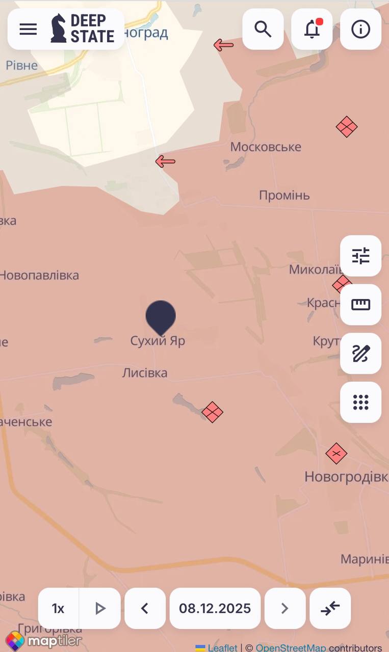 Крім цього, за даними DeepState, російські окупаційні війська просунулись у Сіверську, Мирнограді та поблизу Покровська.