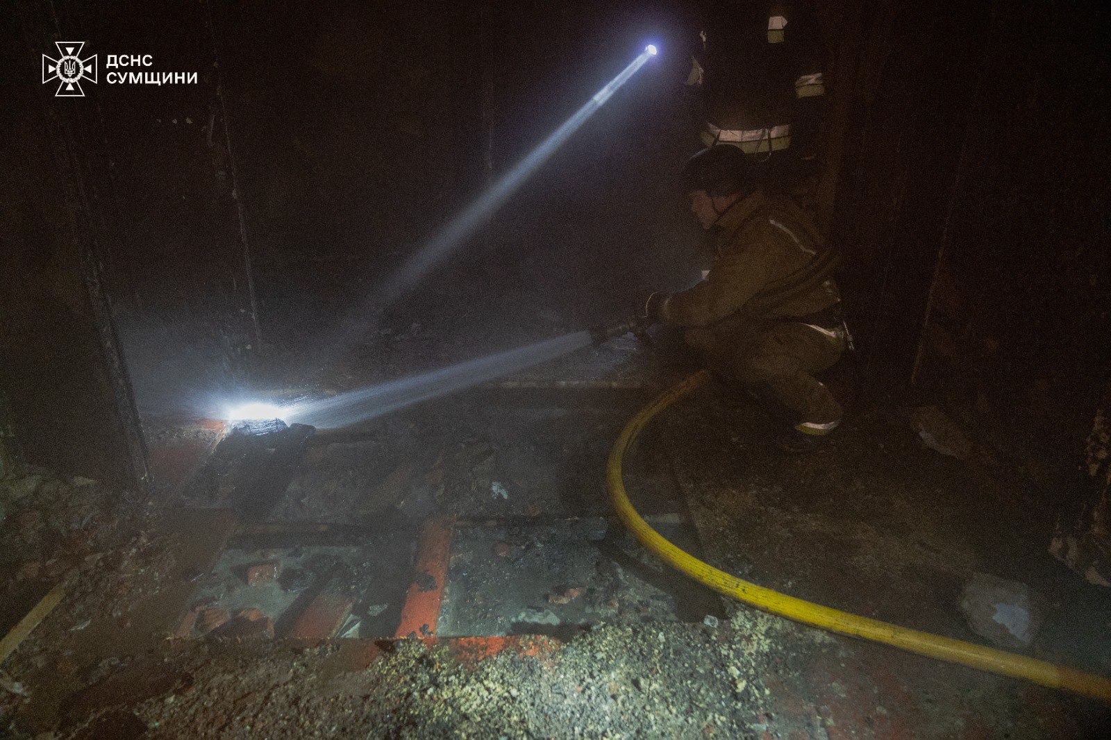Через російські удари у Сумах виникло загоряння 2-поверхової нежитлової будівлі.