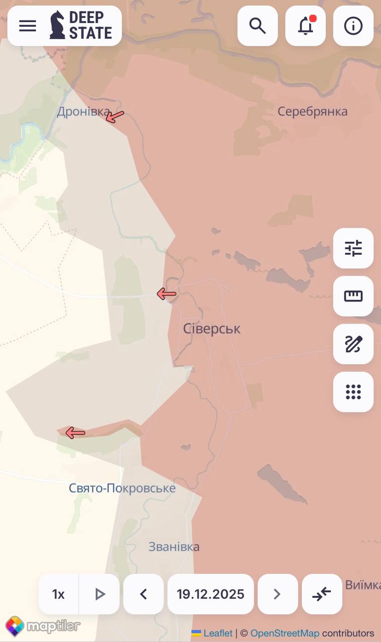 "Мапу оновлено. Ворог просунувся поблизу Дронівки (Донецька обл), Вишневого (Дніпропетровська обл) та у Сіверську (Донецька обл)", - йдеться у повідомленні.