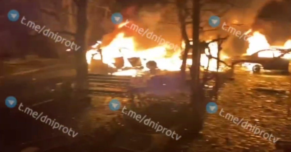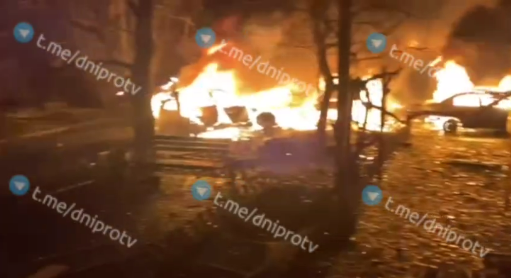 У Дніпрі внаслідок атаки ворожих безпілотників пошкоджено багатоповерховий житловий будинок. Також спалахнули пожежі на територіях дитячого садка та закладу професійно-технічної освіти.