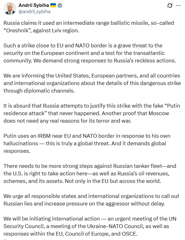 Про це у соцмережі X повідомив міністр закордонних справ Андрій Сибіга, інформує Цензор.НЕТ.