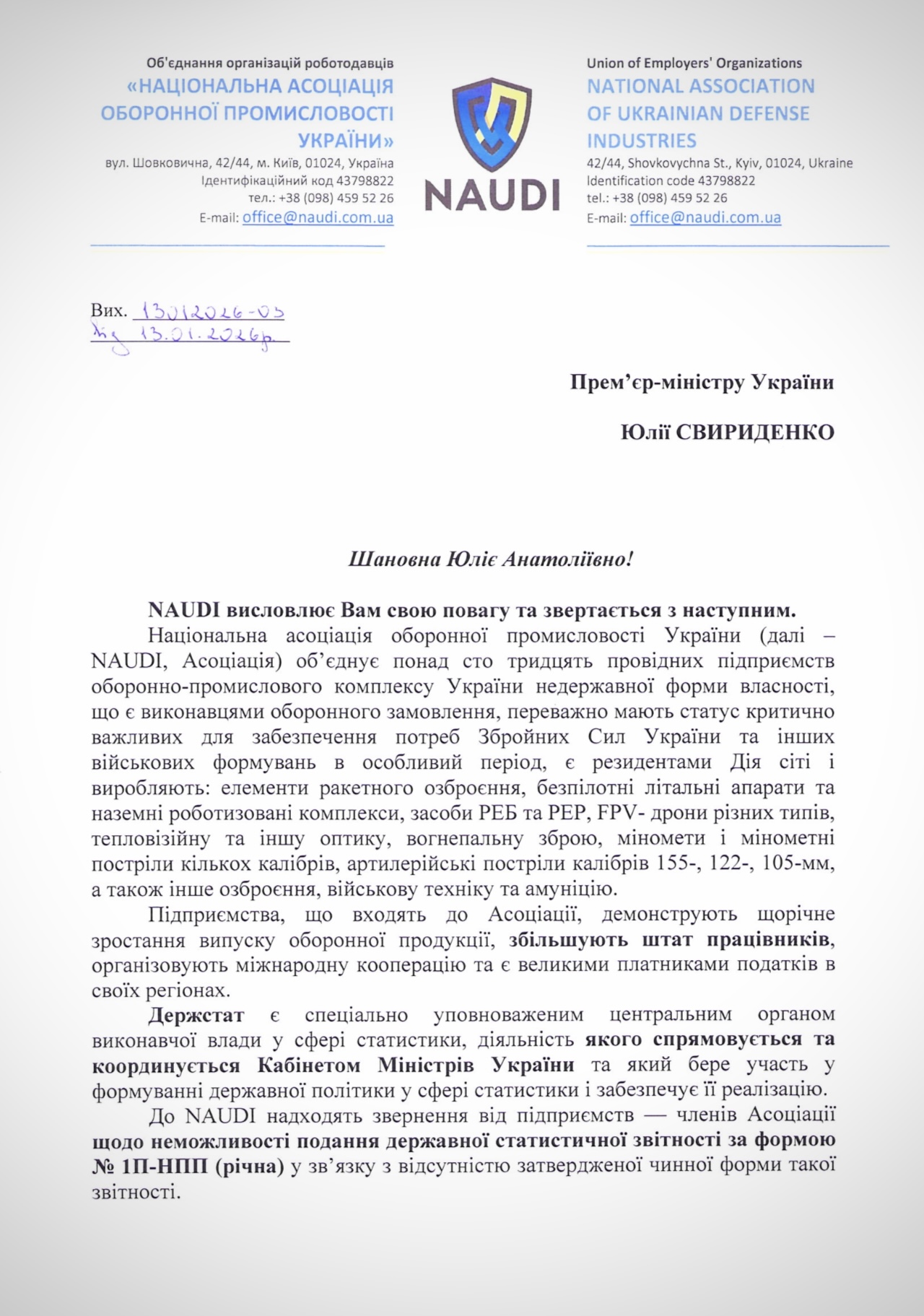 У NAUDI зазначили, що підприємства ОПК не можуть подати державну статистичну звітність за формою № 1П-НПП (річна), оскільки попередня форма більше не приймається, а нову Держстатом досі не затверджено та не введено в дію.