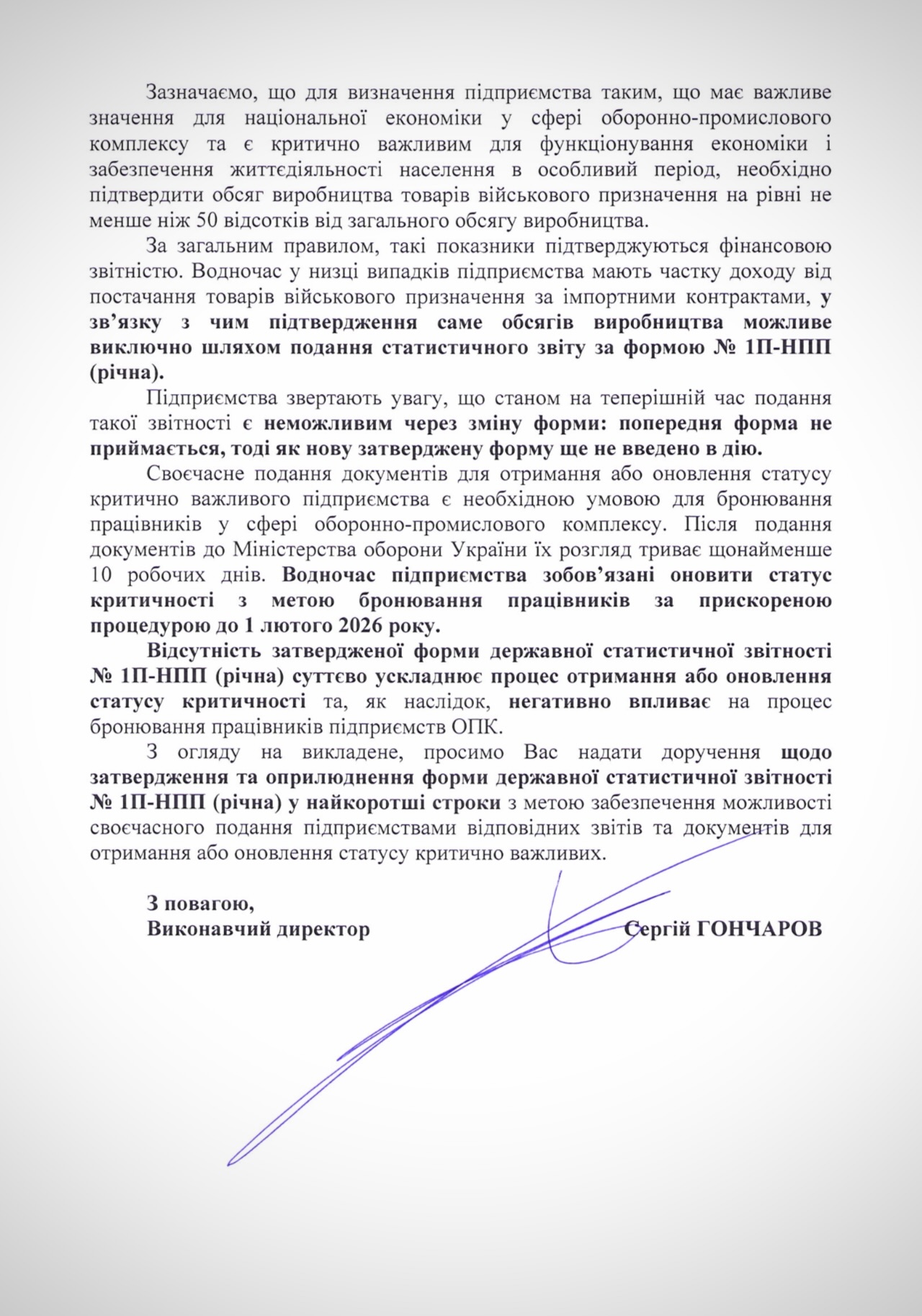 Так, в Асоціації просять прем'єрку Свириденко терміново доручити Держслужбі статистики затвердити та оприлюднити нову форму державної статистичної звітності № 1П-НПП (річна) для підприємств оборонно-промислового комплексу.