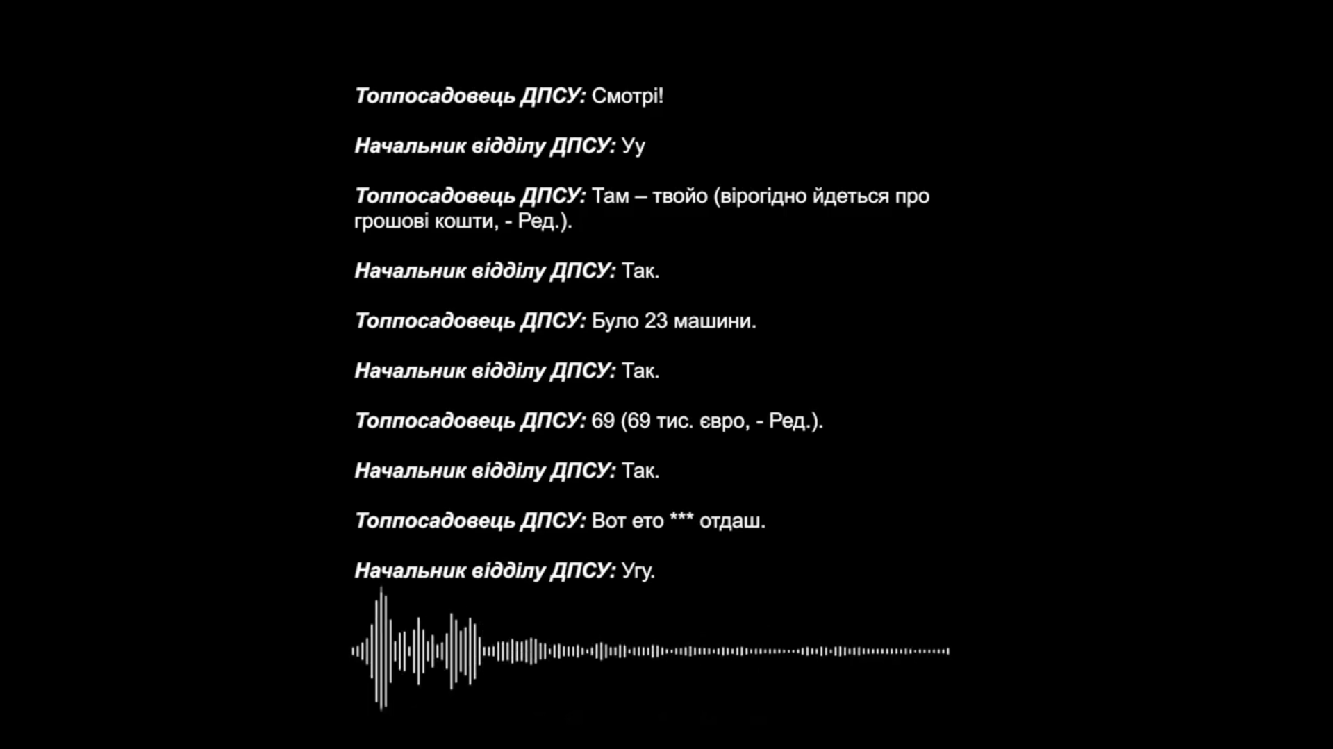 Так, на одному з них зафіксовано розмови, на яких начальник відділу ДПСУ розповідає про одержання 66 тис. євро.