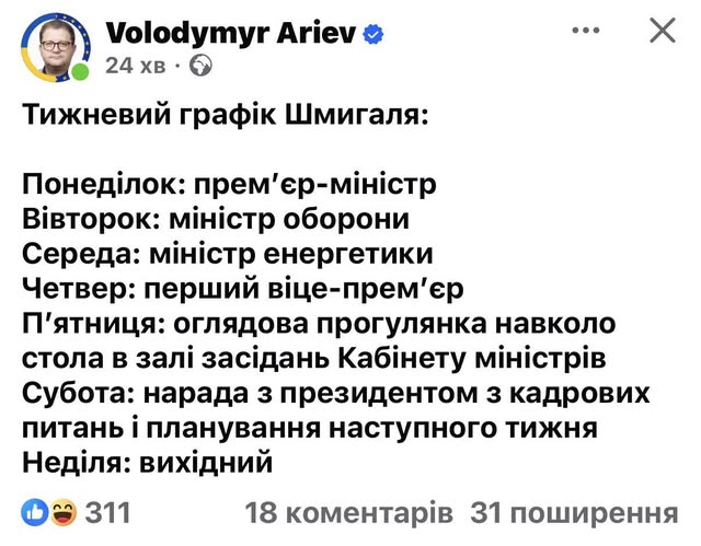 "Розраховуємо найближчими днями поступово перейти від аварійних до погодинних відключень. Наше завдання – вийти на прогнозовані графіки обсягом до 3-4 черг. Також формуємо додаткові резервні бригади для посилення роботи", - написав Шмигаль.