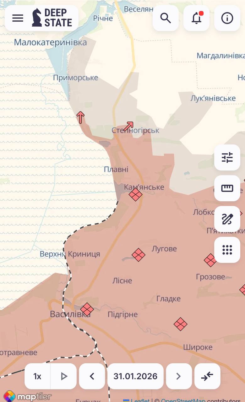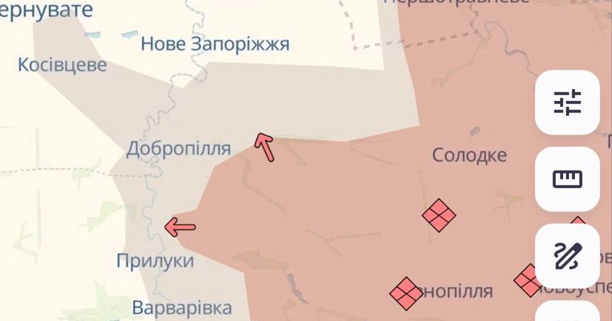 "Мапу оновлено. Ворог просунувся поблизу Добропілля та у Приморському", - йдеться у повідомленні.