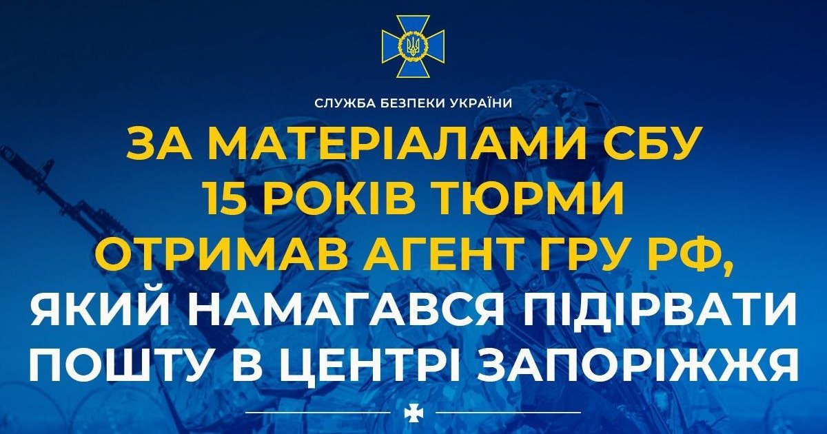 15 років тюрми отримав агент ГРУ РФ, який намагався підірвати пошту в центрі Запоріжжя