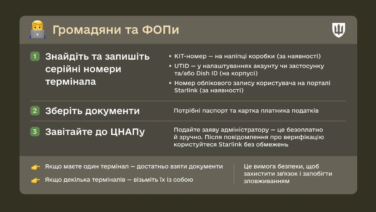 • Власникам Starlink необхідно зареєструвати дані в застосунку Армія+ (функціонал буде доступний згодом).
