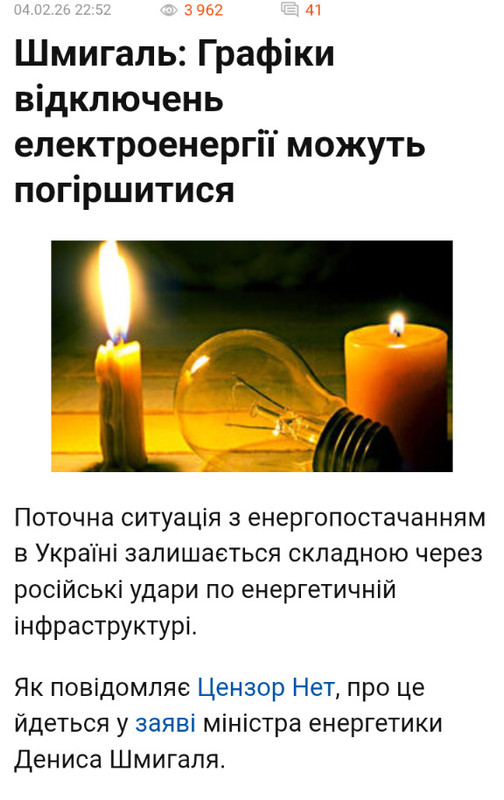 "Сьогодні багато телеграм-каналів поширили недостовірну інформацію про посилення відключень електроенергії, із зазначенням що "світло може не з’явитись взагалі". При цьому – видавали це за цитату заяви НЕК "Укренерго". Офіційно повідомляємо: поширена інформація не має нічого спільного із дійсністю", - йдеться в повідомленні.