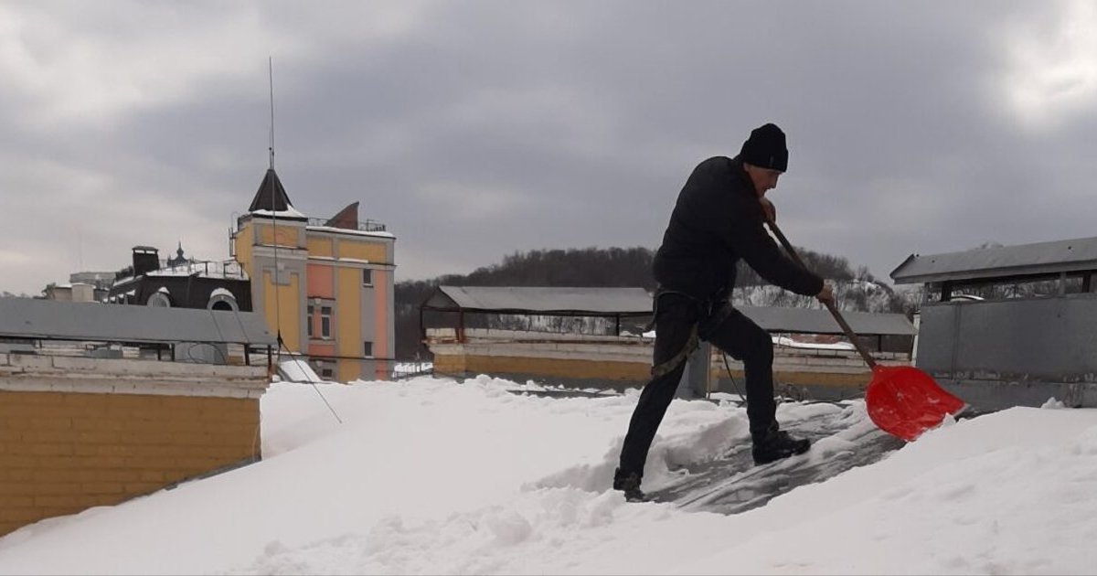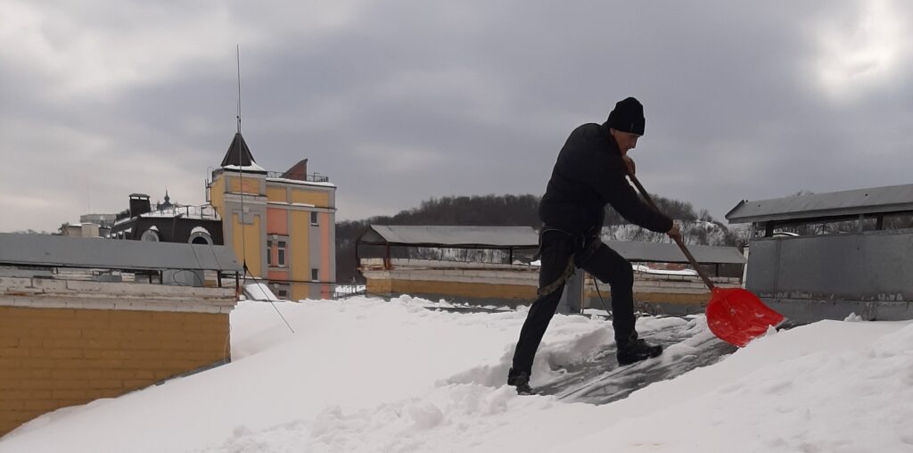 - очищати дахи та козирки, огороджувати небезпечні ділянки, вивозити сніг протягом доби;