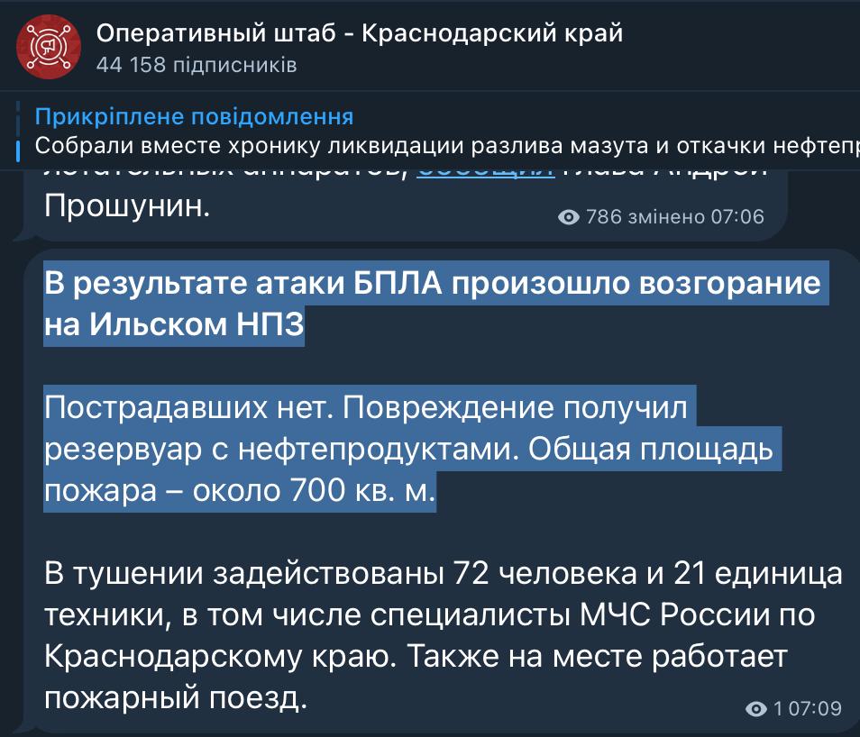 Дрони атакували Ільський НПЗ у Краснодарському краї (оновлено). ВІДЕО+ФОТОрепортаж