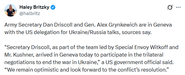 Сполучені Штати розширили склад делегації на переговорах з Україною та РФ у Женеві.