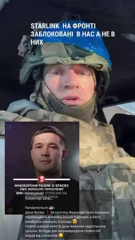 - Пізніше міністр оборони Федоров повідомив, що Міністерство оборони України разом із компанією SpaceX вирішують проблему використання Starlink на російських БпЛА.
